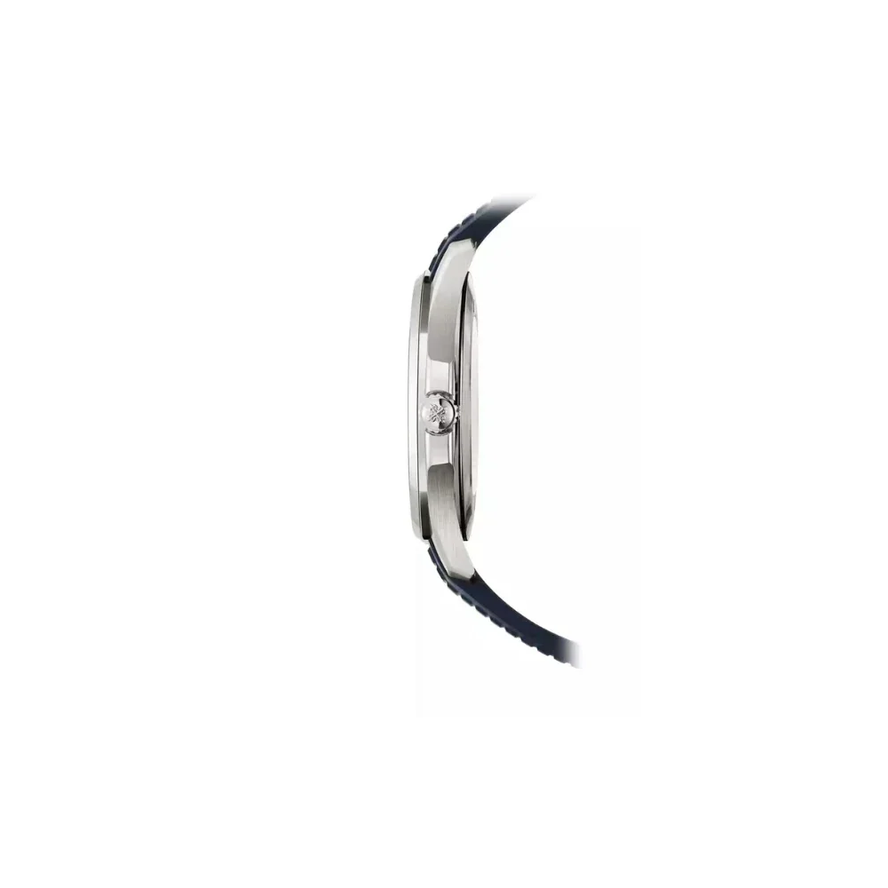 The PP Aquanaut 5168G-001, released to mark the 20th anniversary of the Aquanaut collection, is a bold and modern interpretation of the line. Featuring a 42.2 mm case in 18K white gold — the largest in the Aquanaut family — it combines sportiness with refined luxury. The embossed gradient blue dial, shifting from navy to sky blue, pairs seamlessly with a matching durable composite strap, making it the perfect companion for both adventure and elegance.