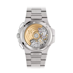 The PP Nautilus 5990/1A-011 is a masterful combination of sporty elegance and technical sophistication. Crafted entirely in stainless steel, it features the iconic Nautilus design with a striking blue embossed dial and integrated bracelet. This versatile timepiece merges flyback chronograph functionality with dual-time capability, making it the ultimate travel companion for modern professionals and collectors.