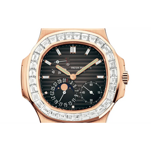 The Patek Philippe Nautilus Ref. 5724R-001 is a rare and prestigious timepiece, crafted for the most discerning collectors. With its diamond-set elegance, refined complications, and timeless design, it stands as a symbol of exclusivity, technical mastery, and enduring sophistication.