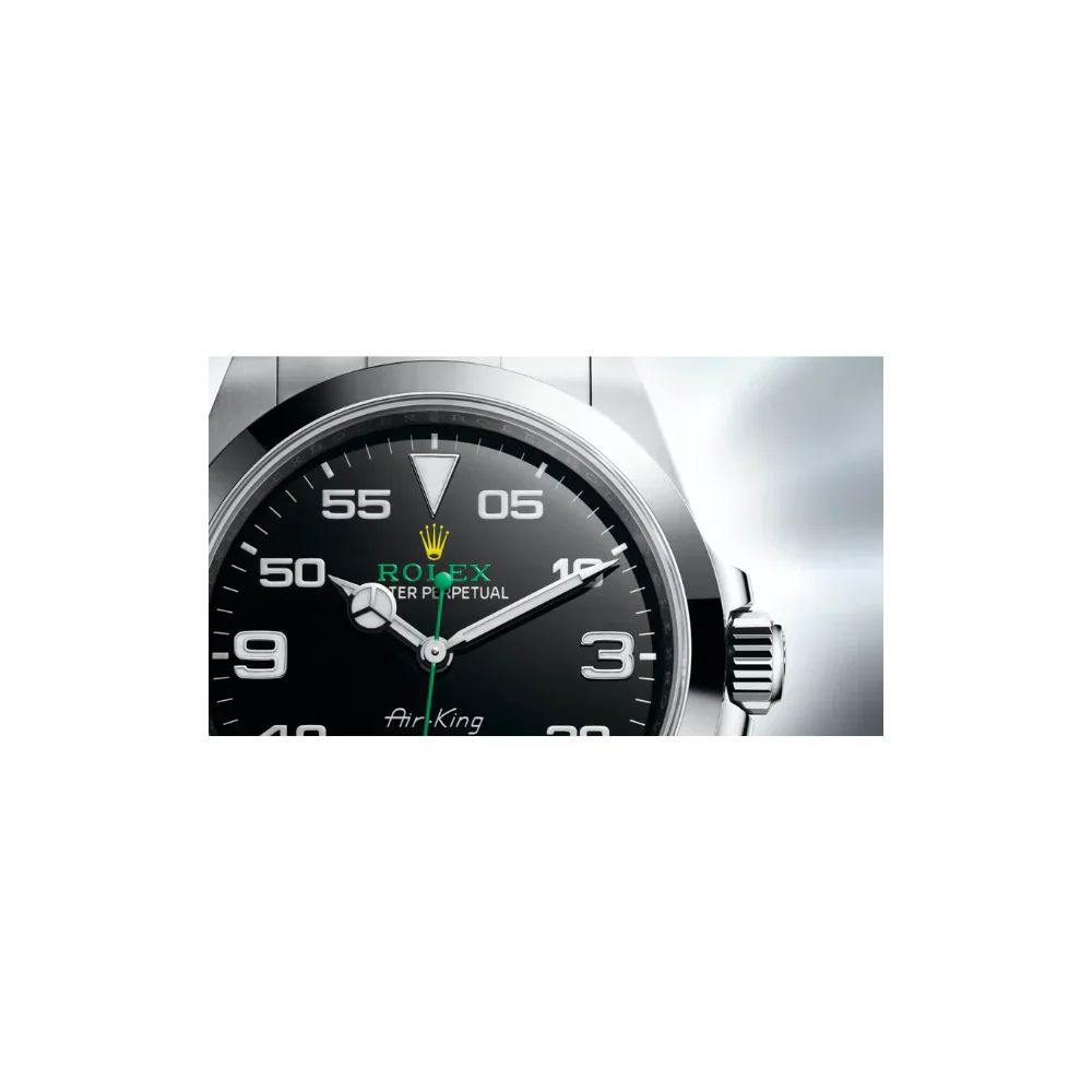 The RL Air-King 126900 is a bold tribute to RL’s long-standing connection with aviation and precision timekeeping. With its 40 mm Oystersteel case, striking black dial, and robust Oyster bracelet, the Air-King embodies both heritage and modern performance. Instantly recognizable with its bold numerals, clear minute scale, and the green-and-yellow RL signature, this watch is a contemporary icon designed for explorers of the skies and beyond.