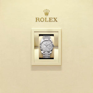 18 ct White Gold – Meteorite Dial with Baguette Diamonds – Fluted Bezel – President Bracelet