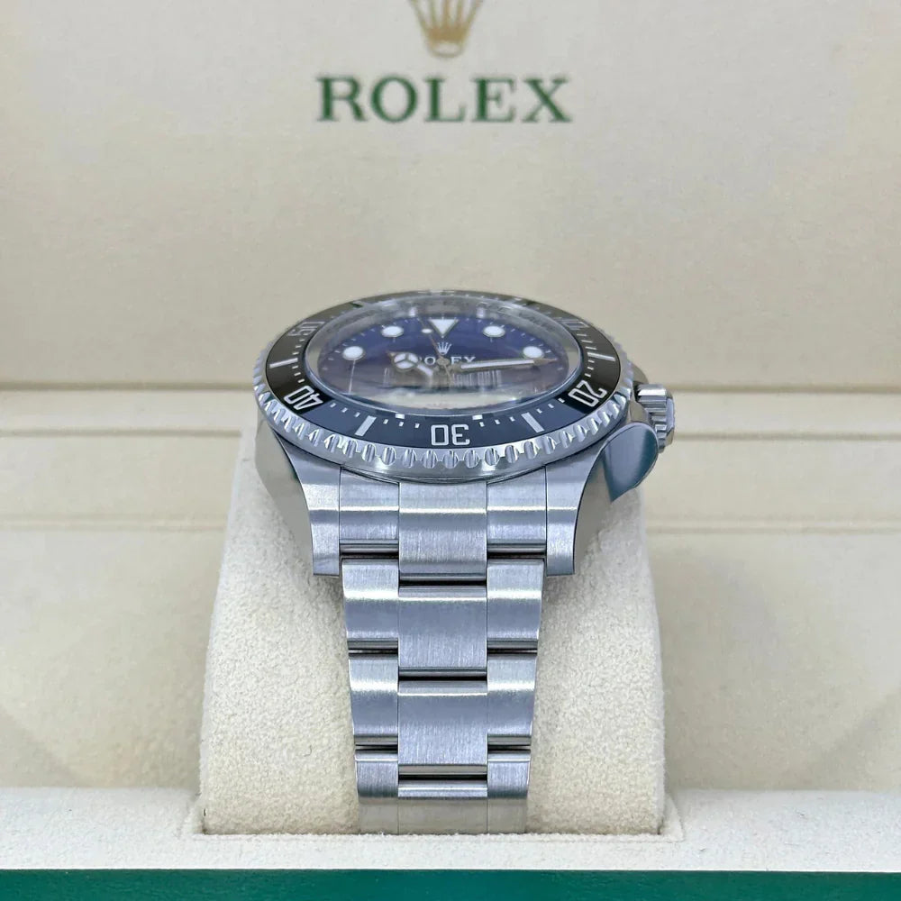 The RL Deepsea Ref. 136660 represents the pinnacle of professional diving watches, merging cutting-edge engineering with RL’s legendary precision and robustness. Crafted from corrosion-resistant Oystersteel and housed in a 44 mm Oyster case, this watch is engineered to endure the extreme pressures of the deep ocean while maintaining everyday elegance.