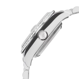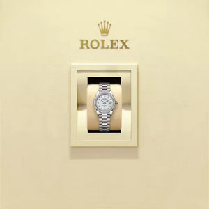 The RL Lady-Datejust 28 Ref. 279139RBR-0008 is a dazzling expression of feminine refinement and horological excellence. Crafted entirely in 18 ct white gold, this elegant 28 mm model features a delicate mother-of-pearl dial adorned with diamond hour markers, framed by a bezel factory-set with brilliant-cut diamonds. Paired with the prestigious President bracelet, it represents timeless sophistication and enduring luxury for women of distinction.