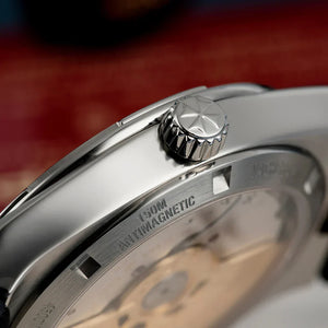 Crystal: Scratch-resistant sapphire, transparent caseback